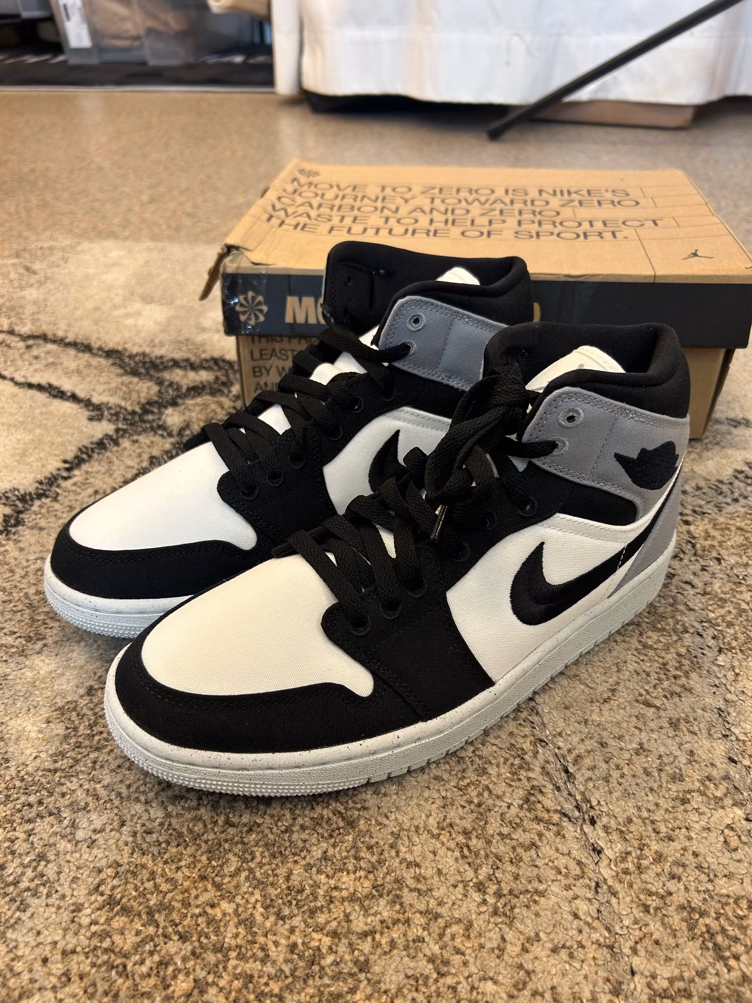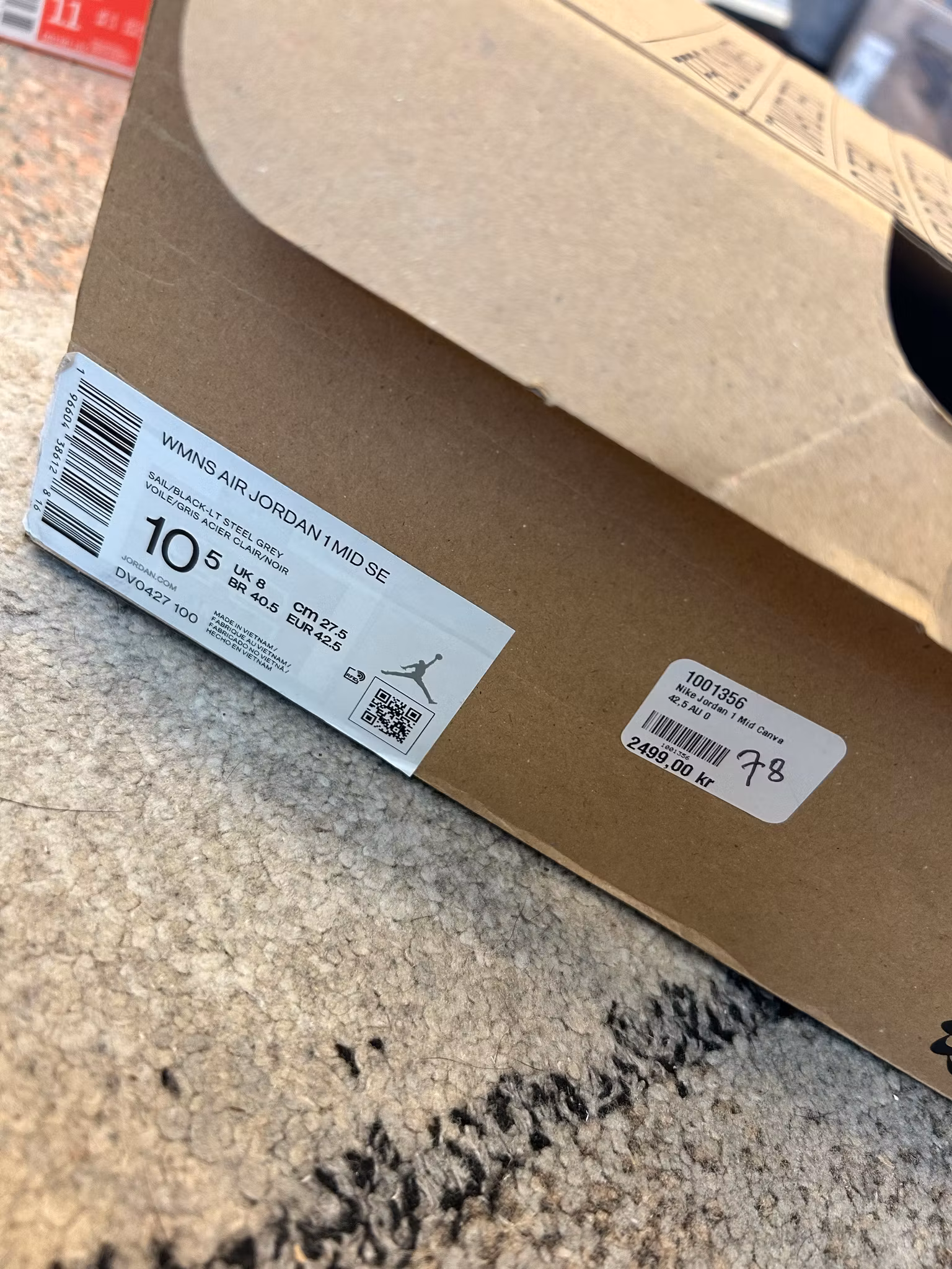 Air Jordan 1 Mid Grey Canva NYA! 42.5 2 200 kr Produkten är tyvärr slut i lager. :( Dela Lagersaldo: Artikelnummer: 3077 Information Skick: 10/10 - helt nya!(Originalbox medföljer!)