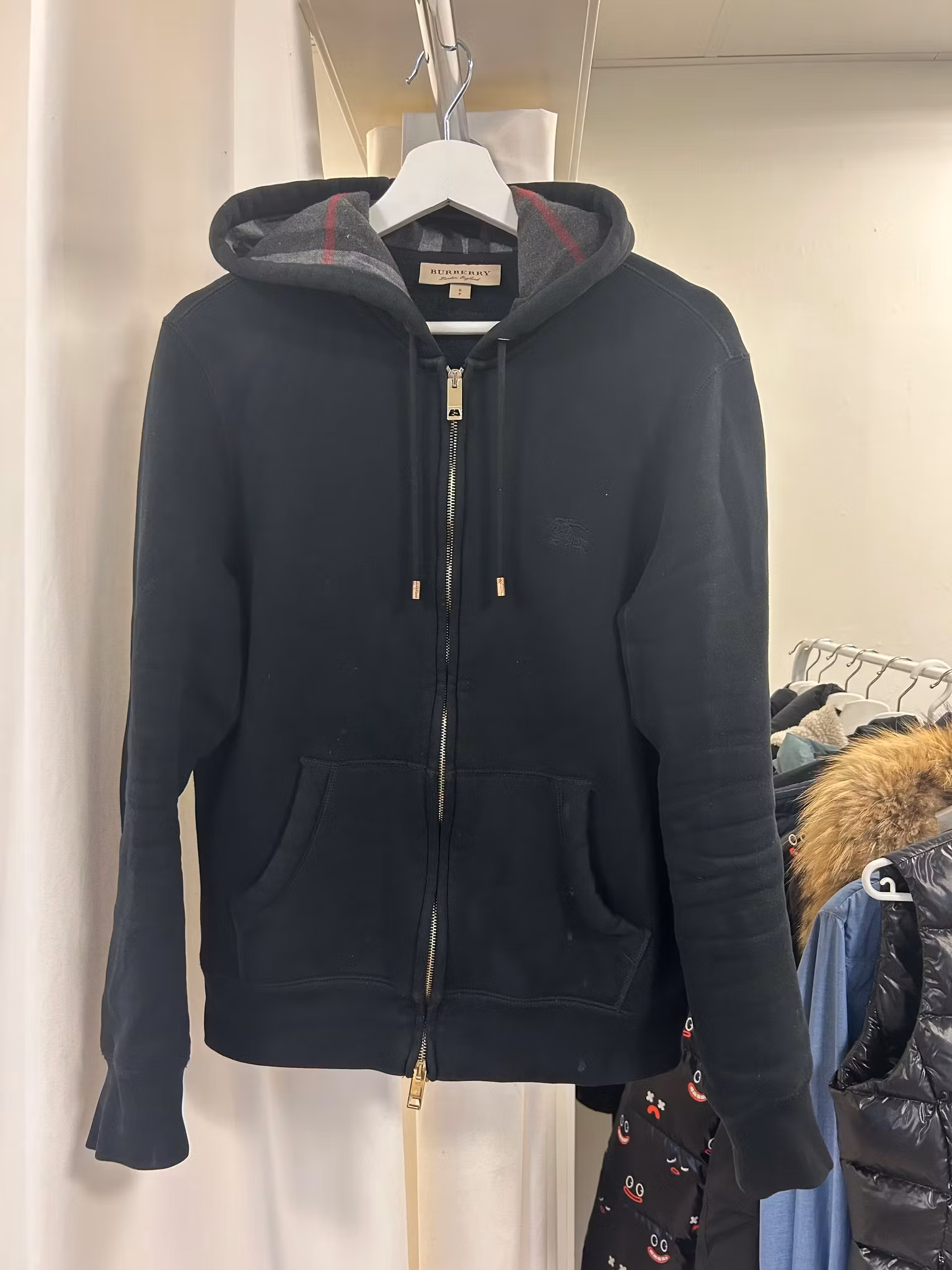 Burberry Logo Zip Hoodie S 7 000 kr 2 700 kr Produkten är tyvärr slut i lager. :( Dela Lagersaldo: Artikelnummer: 2846 Information Skick: 8/10 - använt skick!Kan förekomma någon fläck men går bort vid tvätt.(Nypris: 7.000kr)